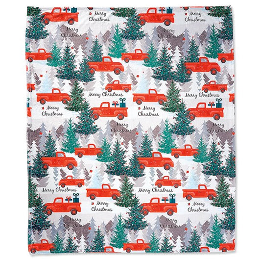 Christmas Truck Blanket, Red Farmhouse Holiday Throw