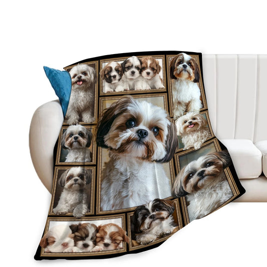 Shih Tzu Dog Photo Collage Blanket For Dog