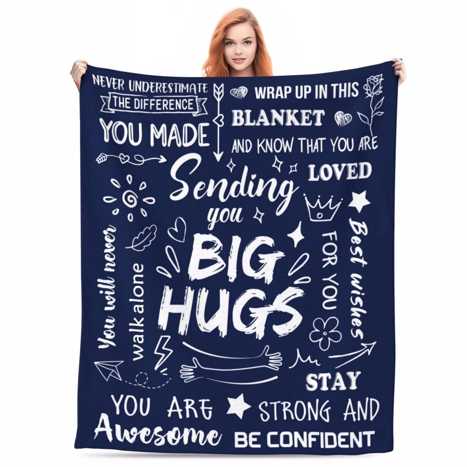 Navy Blue Sending Big Hugs Inspirational Blanket