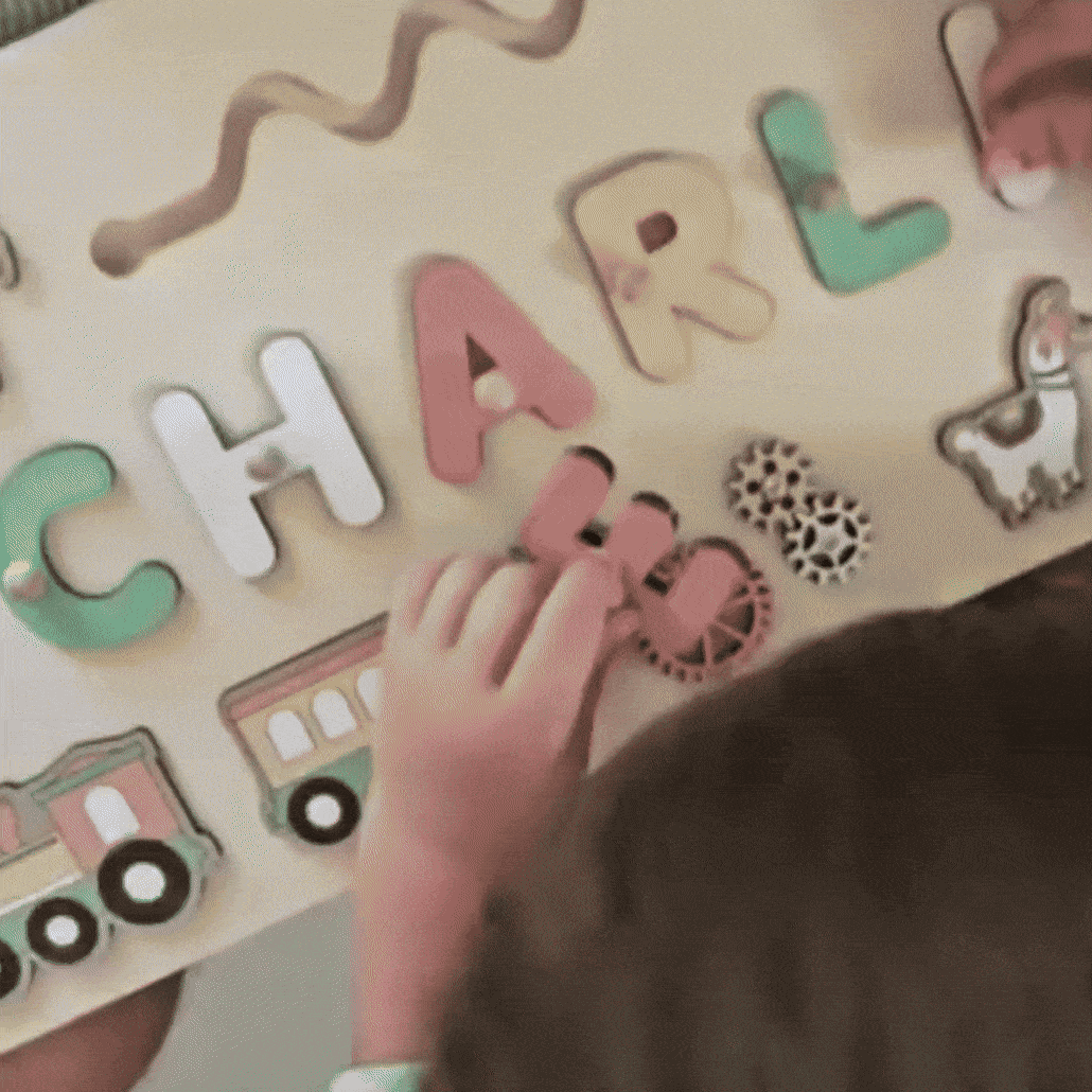 There's a moment every parent remembers: when their child first recognizes the letters of their own name. This wooden puzzle turns that moment into a game.